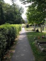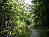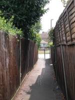 At the far end of the path you emerge onto a residential road. Go straight ahead for some 300 metres, then turn right at a small grassy patch for another path between the houses, this one featuring a good many trees on either side. In a short distance you find yourself within Darrick Wood.