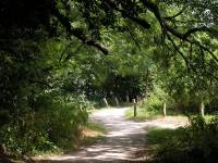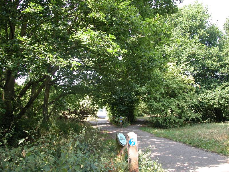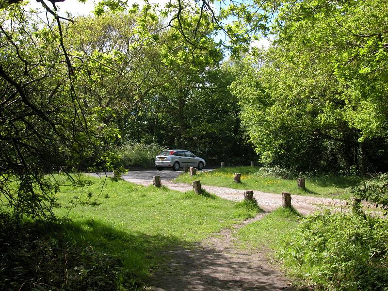In Keston itself the LOOP first runs along Lakes Road to come to the centre of the village. (Keston is actually a village, being discontiguous with the conurbation of Greater London nearby). Turn right to reach the roundabout, only about a hundred metres distant. There's a green here, beside which three roads lead off to the northeast, north and northwest. Go towards the northwestern exit (West Common Road) but then turn left onto a track that runs parallel with the road within the adjacent woodland.