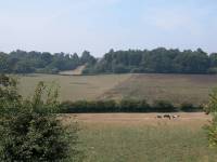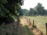 Jubilee Country Park is a relatively small area of pasture and woodland, and the Loop really only skirts the edge of it. An obvious driveway runs across the middle of the park, slightly north of west, but the Loop deviates from it to the left only a couple of hundred metres from the Petts Wood gate. Follow a vague track across the pasture, running almost up to a fence, then swing further left to run between the fence (to your left) and Thornet Wood (to your right).