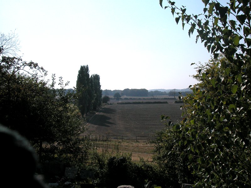 The LOOP turns right into the churchyard. Go past the church to the far end of the churchyard, where you'll find an exit into an open field (this is, in fact, the true edge of open country). Follow the path into a pasture, and keep to the left-hand edge adjacent to a wood.