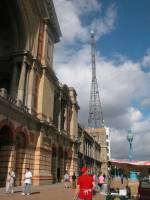 The images above show just what a good site this was for a TV station. From the terrace lining Ally Pally's south front there is a superb panoramic view of most of east and central London. Prominent in the images above are the triple towers of Canary Wharf, while further to the west (right) are the major buildings of the City; the Swiss Reinsurance Tower (currently under construction), Tower 42 (formerly the National Westminster Bank's corporate HQ) and the triple residential towers of the Barbican. The view of the West End is more restricted though the BT tower is well seen. If you know just where to look, St Paul's Cathedral, the Millennium Dome and the London Eye can all be spotted. (Hint; the Dome is not far to the east of the Canary Wharf towers).