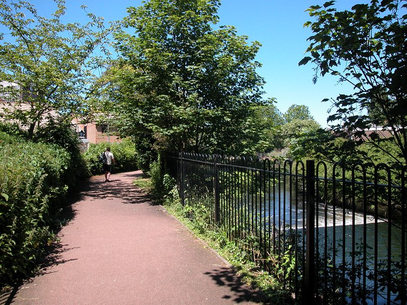 and just before the riverbridge, turn left onto a riverside walkway (pictures, third image above).