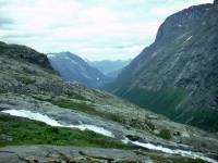 We arrived at Trollstigheim, for a five minute stop. The viewpoint was 500 metres away so there was not enough time to visit, but I did the best I could. The place was littered with souvenir shops, kiosks and cafes, and I chose the word "littered" with care - it really was a mess, so out of place in this environment. It was about the only thing I saw in Norway that made me frown.