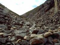 with enormous, angular boulders. Progress is slow. |