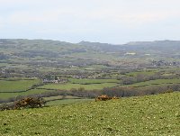 of the Severn vale fringed in the distance by the Cotswolds, the