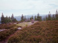 Mounth Notes: Creag Leacach is Glas Maol's immediate neighbour to the south and can easily be climbed from it; there's only about 200 ft of reascent. The summit itself is surprisingly rocky and, unusually for a Scottish mountain, carries a drystone wall along its crest. There are good views to the south down to Spittal of Glenshee and beyond, but the great bulk of Glas Maol cuts out much of the panorama to the north and northeast. |