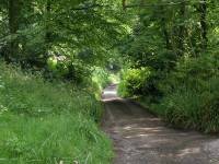 At the top end of the golf course you find yourself in a quiet little residential road called Sion Hill. Follow this road around a right hand curve, go uphill to the top of the road and then turn left into Summerhill Road, following it to the west. At the far end of Summerhill Road you're almost out into the pastures at the edge of town, and the route of the CW is led along several walled gravel paths grazing the ends of more residential roads.