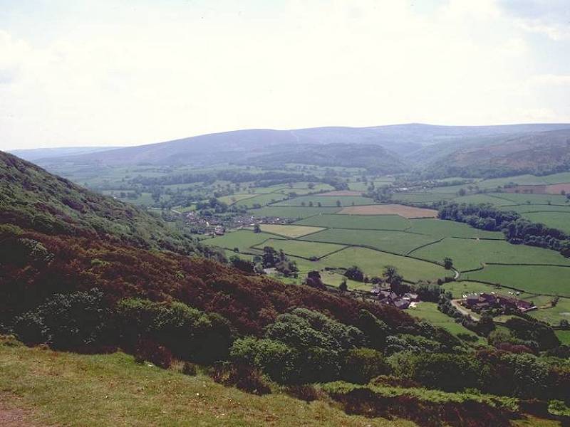At the top of the combe, on about the 200-metre contour, turn hard right for the path around the top of the hill. Tending west at first, it curves around to the southwest and then the south. Excellent views open up across the bulk of Exmoor.