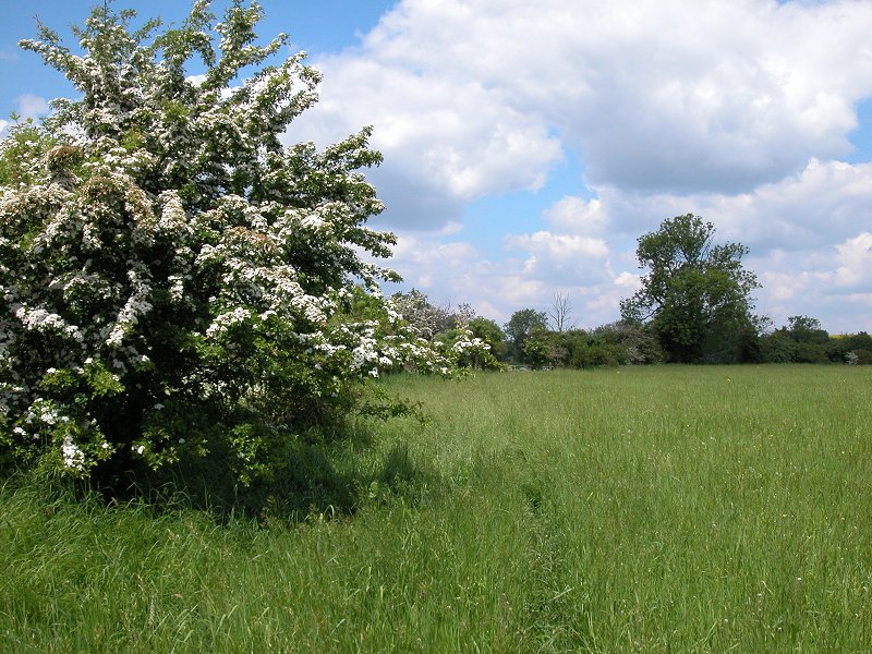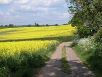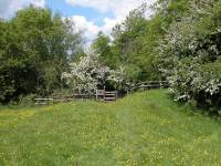 This track climbs fairly briskly up Lodge Hill and approaches Alne Wood to the left, or west. Walk alongside the wood. At the far corner the route passes a motley collection of sheds and then enters the short stretch of Burnet Brake before hugging the side of the rather larger Newslands Wood.