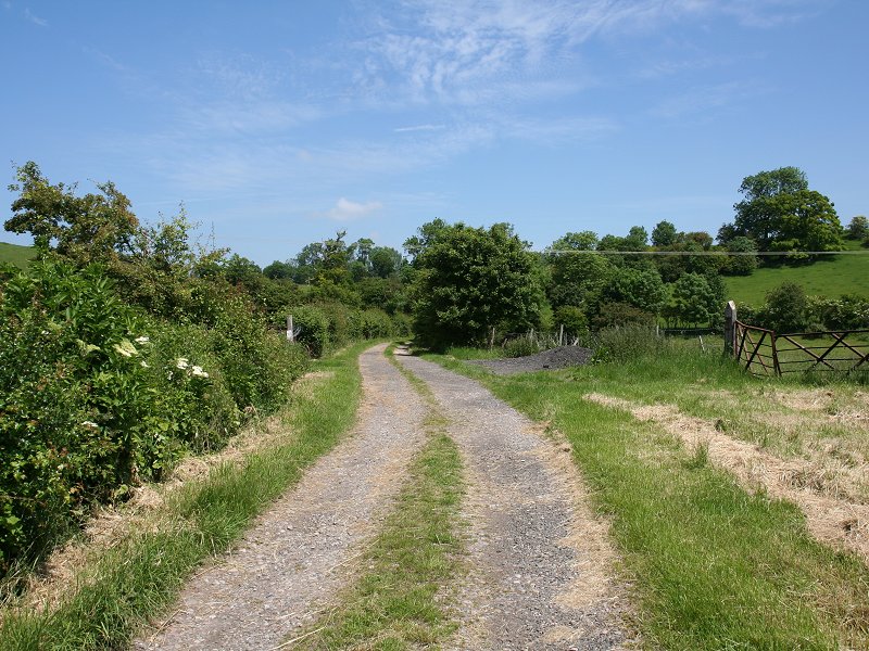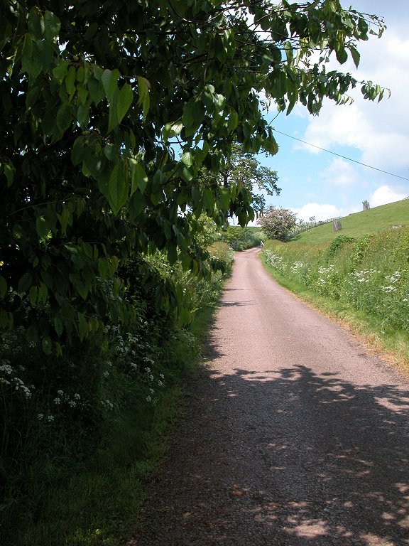 Another uphill stretch greets us beyond the road, for which the Way adopts the driveway to Dinglewell Farm. Don't miss the bifurcation which takes the Way up and across a pasture to the left. At the top of the pasture the Way meets a minor road and follows it for some 250 metres to the north west before dodging into a farm track to the right.