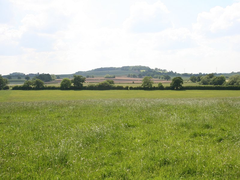 From the north side of Oversley Hill the path turns left again, to head downwards to a col short of Primrose Hill, the next objective. From the col climb up to the ugly and enormous grain silos at Lower Oversley Lodge. Primrose Hill drops sharply from here and you will be rewarded by a view of Alcester, nestling below.