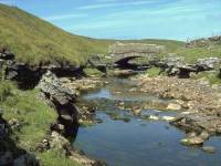The packhorse bridge from the west bank; the PW leading away from the bridge to the north