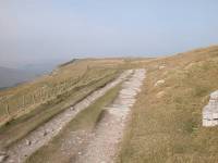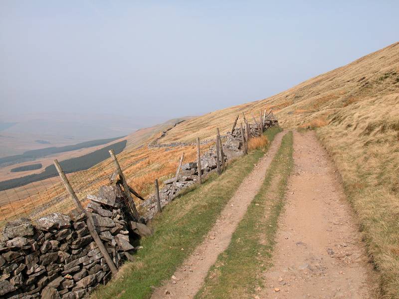 Cam High Road is an old Roman road and, in common with most of the roads constructed in that era, is dead straight. The Dales Way drops to the right, into the Oughtershaw valley and ultimately into upper Wharfedale. The Pennine Way heads onwards, along the top of a windy moorland ridge, eventually reaching the limit of a tarmac road at Kidhow Gate.