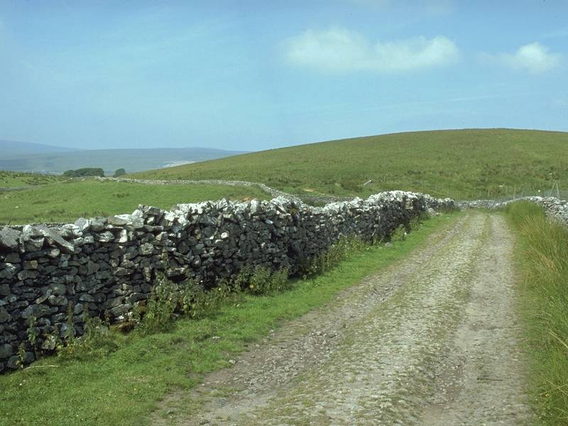 Another old drove road leads north from Old Ing, apparently the route of an ancient thoroughfare from Settle to Hawes. Almost immediately north of Old Ing the track comes alongside Dry Laithe Cavern.