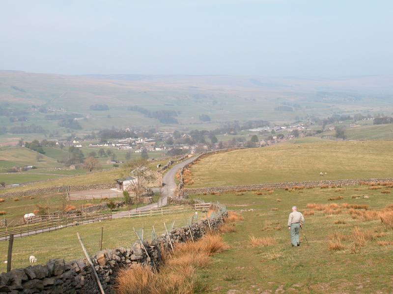 Hawes, and it's nearer "suburb" of Gayle, are now in view. The Pennine Way continues, now as a simple grassy path, down the ridge of Rottenstone Hill across pastures.