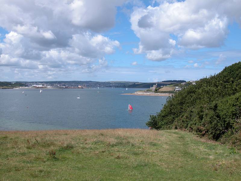 There is a lighthouse at St Anthony Head but, like those at Tater Du and Lizard, its surrounds and access drive are private. The coast path zigzags up a surprisingly steep slope to reach a car park, beside which are a couple of rather utilitarian cottages. Go down the track to the south, where you will find a little complex of concrete batteries and blockhouses (one of which now functions as a public convenience). These blockhouses have passed form the Navy to the National Trust and are now holiday lets. On top of St Anthony Head itself is a topograph, which points out the highlights in the wealth of detail in view.