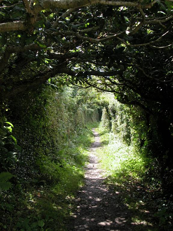 At Carricknath Point the coast path turns half left to run southwards and to approach St Anthony Head. The vegetation is very lush around these parts and the path gets hemmed in between trees and hedges.