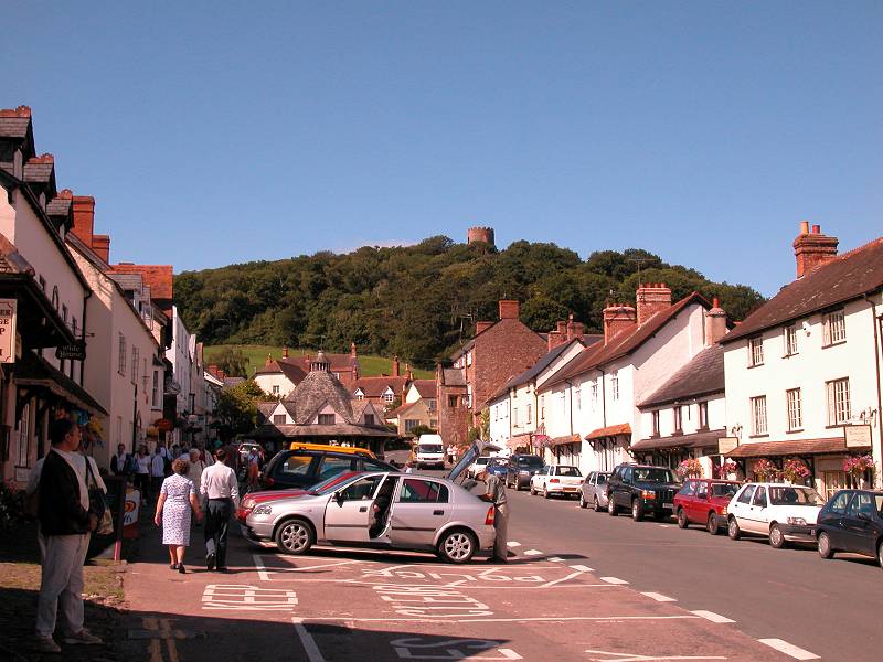 Dunster is a show village. Said by some guidebooks to be the most beautiful village on Exmoor (which is stretching it a bit because Dunster actually lies off the edge of the moor), it is almost a film-set version of Olde England and as a bonus it is set between two prominent hillocks - one dominated by the 250-year old Conygar Tower, a daymark for shipping, the other crowned by Dunster Castle, said to be a thousand years old. With its steep and wide main market street, its hotchpotch of historical architecture, and its back lanes and picturesque gardens, Dunster oozes charm and is well worth a half-day visit.