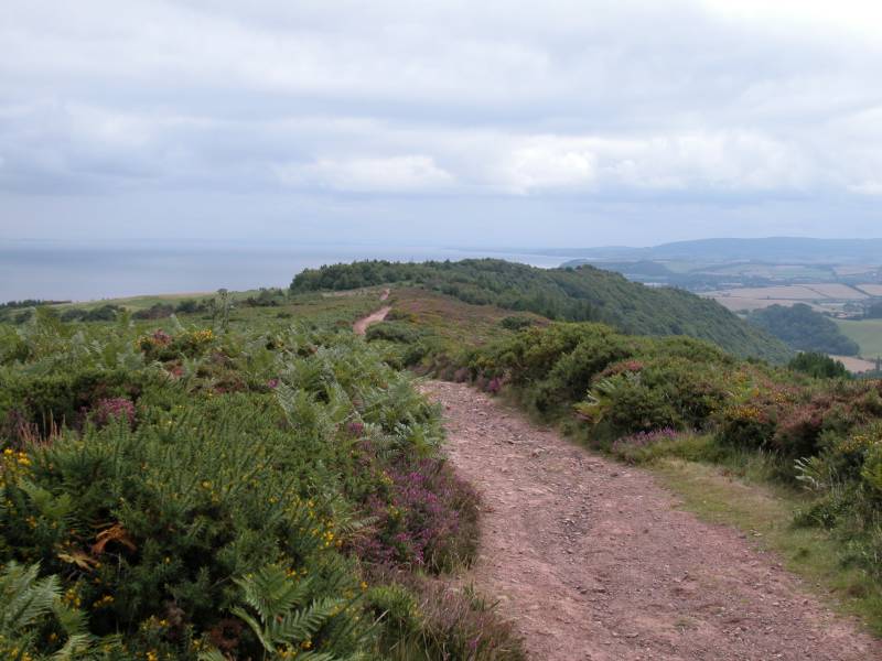 The ridge path now enjoys extensive views over to Minehead and the Bristol Channel, and of the Brendon Hills to the south. Once you approach the end of the ridge the path enters an area of woodland. Watch for another fork, at which you go left.