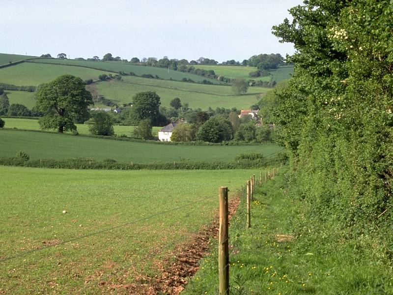 At a path junction on the hilltop turn right and follow a track down to Lower Court Farm. A road leads initially east, then southeast, smartly uphill for just under a mile to reach Treborough.