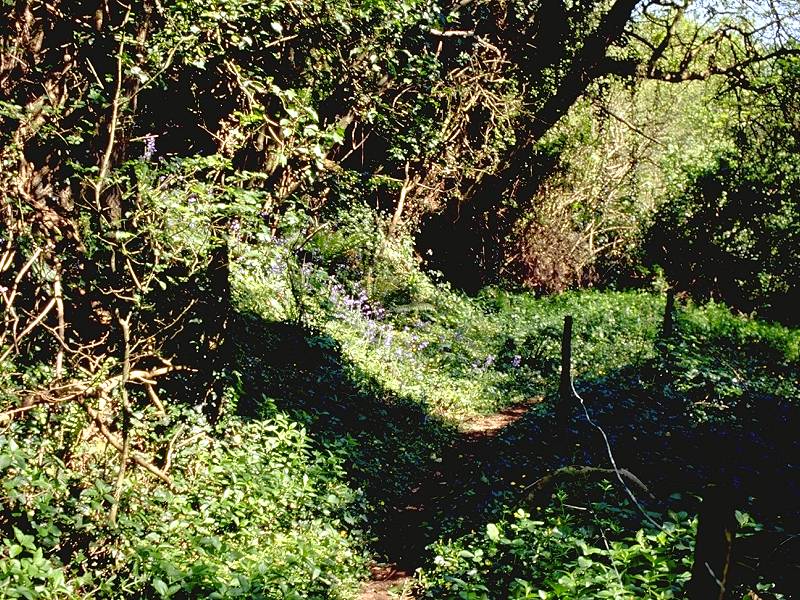 Monksilver is approached by a very pleasant descent path along the edge of a pasture, which initially has trees to the left. Monksilver itself is yet another tiny, compact village with a church and a few dozen cottages. It seems like a bustling metropolis compared to the last four villages we passed through, but there are no facilities here - a pity, as this would be just the right place for a coffee shop. Walk through the village to the north, and at a junction take the lane to the right. At this point you leave the Exmoor National Park. After 300m leave the lane for a footpath leading off half left. The path runs in a deep runnel though a spinney, not shown on the map. I have to warn that, when I did this walk in 1994, the path was appallingly rough.