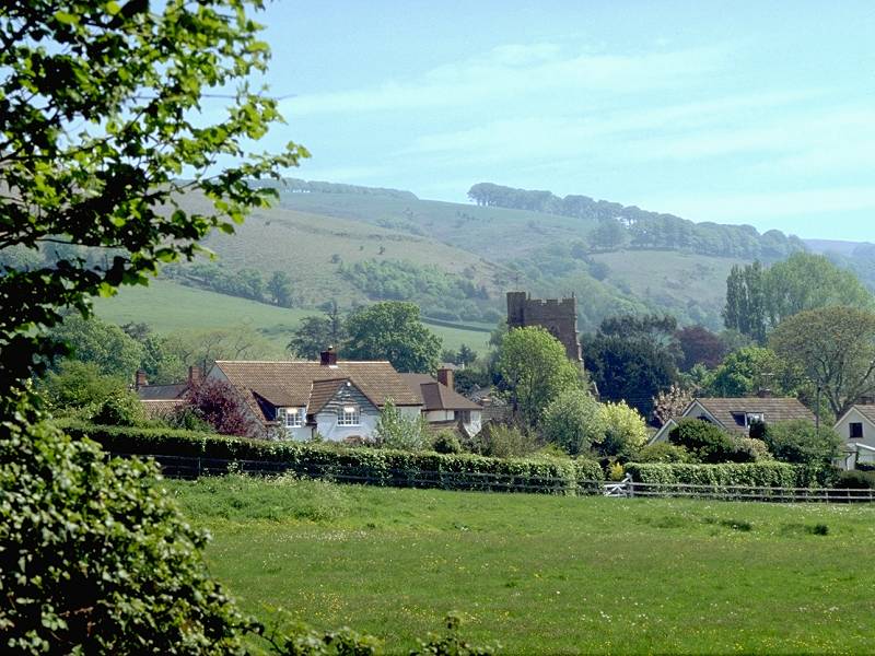 You reach what passes for a main road through the village; turn right onto it and follow a lazy s-bend, necessary as the village is built into the foot of another combe. Just beyond the far edge of the village, before you reach Leighland Farm, take a footpath to your left. Keep a close eye on the map now, for this path does a complicated little dance of right and left turns before crossing a brook and heading for Pitt Mill farm.