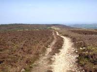 Wills Neck is a heather-covered dome rising to 386 meters, or around 1275ft. The views from the summit are superb. The Quantocks themselves are seen end-on in both directions, of course, but the countryside to either flank is superbly presented. Of particular interest are the views out to the northeast; the Bristol Channel is well seen. The prominent building near the coast is the Hinckley Point power station. The town of Bridgwater is in view about 9 miles away due east, while on clear days you should make out a good proportion of the rest of the Somerset Way across the Levels. The Mendips, Wells and Glastonbury Tor should all be seen; if the visibility is particularly good you should be able to spot the Severn Bridges, linking England to Wales across the Bristol Channel, way over to the northeast. They will be in view for another twelve days: it will not be until Leckhampton Hill near Cheltenham before you lose sight of them again for the last time.
