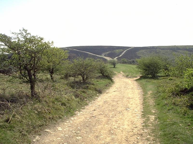 Bicknoller Coombe is an exciting little ravine, and is very reminiscent of the climb up to Bossington Hill from Porlock three days ago. The coombe rises straight into the scarp slope of the Quantocks and ascends some 670ft in roughly a mile. After a couple of twists in the higher part of the coombe the path emerges at a major complex of path junctions on the apex of the ridge. You've arrived at Black Ball Hill, 302 meters above sea level.
