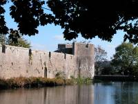 Go left for a few paces out to the A371 main road. Watch the traffic! Go along the road to the right for a very short distance then turn left for a path alongside a moat and an imposing stone wall. You're following the perimeter of the Bishop's Palace, the official residence of the Bishop of Bath & Wells.