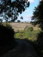 I remember West Pennard as a neat and sleepy little place. The map shows a grid of footpaths east of the village, and your next destination is the top of Cottle Lane, so there are many combination s of path you could take to get there. My favoured variant is to walk from the East Street lane junction along the road to the main village crossroads, and turn right; after 200m find a footpath to the left and follow this along a field boundary for 250m. Now turn right onto a path heading generally southeast for 150m, then go left again for a path heading uphill, for a further 200m. A continuation of this path continues uphill and merges with Cottle Lane, but there's better scenery to be had a little way south. Take the path southeast for about 300m, behind the village school, then take a track to the left going uphill. In 150m this diverges into three rights of way. Follow the one going half left, going diagonally up the steep slope of Pennard Hill. If you take a look behind you will see a splendid retrospective view across the village towards Tor Hill. Keeping a careful eye on the map, follow the field boundaries up to a junction of four footpaths with Cottle Lane.
