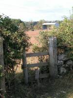 At the Pilton Park track junction the path swings half right but can still be difficult to follow, not least because there are some vehicle tracks in the vicinity that the map doesn't show. Head slightly east of north, tending uphill, and head for the southwest corner of a ribbon of woodland. The path follows the southern edge of this wood, initially just inside the fence. Continue along a little way past the other end of the wood to converge with the lane at Pilton.
