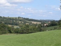 Drop through Compton Wood, reaching a dell at the top of a lane above the village of Compton Martin. Find another path heading due east from here, skirting the village along the contour. This brings you to the head of a minor road pushing out of the village to the south. Go left then right, crossing a small enclosure on the edge of the village, to hit Highfield Lane; turn right and follow it uphill between hedgerows. About 100 meters after a sharp right bend turn left onto a footpath heading generally southeast; this is making for Beaconsfield farm. Short of the farm you reach the minor road of Harptree Hill; go down the hill for about 100m, then fork right onto a farm track called Cowleaze Lane. This takes you towards West Harptree and can be rather wet underfoot.