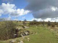 At the east end of Velvet Bottom you pass the Mendip Adventure centre to come to an area of slightly confused terrain; contours seem to wander everywhere at random and you need to keep a careful eye on the map. Avoid fenced-off areas as there are abandoned mine shafts hereabouts. You meet a minor road at a bend; follow the road for some 150 meters then follow a track leading straight ahead just before the road curves sharply to the right. This track bends left to come to the end of another surfaced lane; turn right, then left after a further 100 meters to take another track taking a long, lazy s-shaped meander through a slight depression, first half left then fully right. This locality is named "blackmoor" on the 1:25,000 scale map. With a patch of woodland on your left now, you have a straight track of some 1100 meters to follow, passing Nordrach farm (beyond which the lane is surfaced) and climbing steadily to come out onto the B3134 Wells road at a hilltop near Hazel Warren Farm.